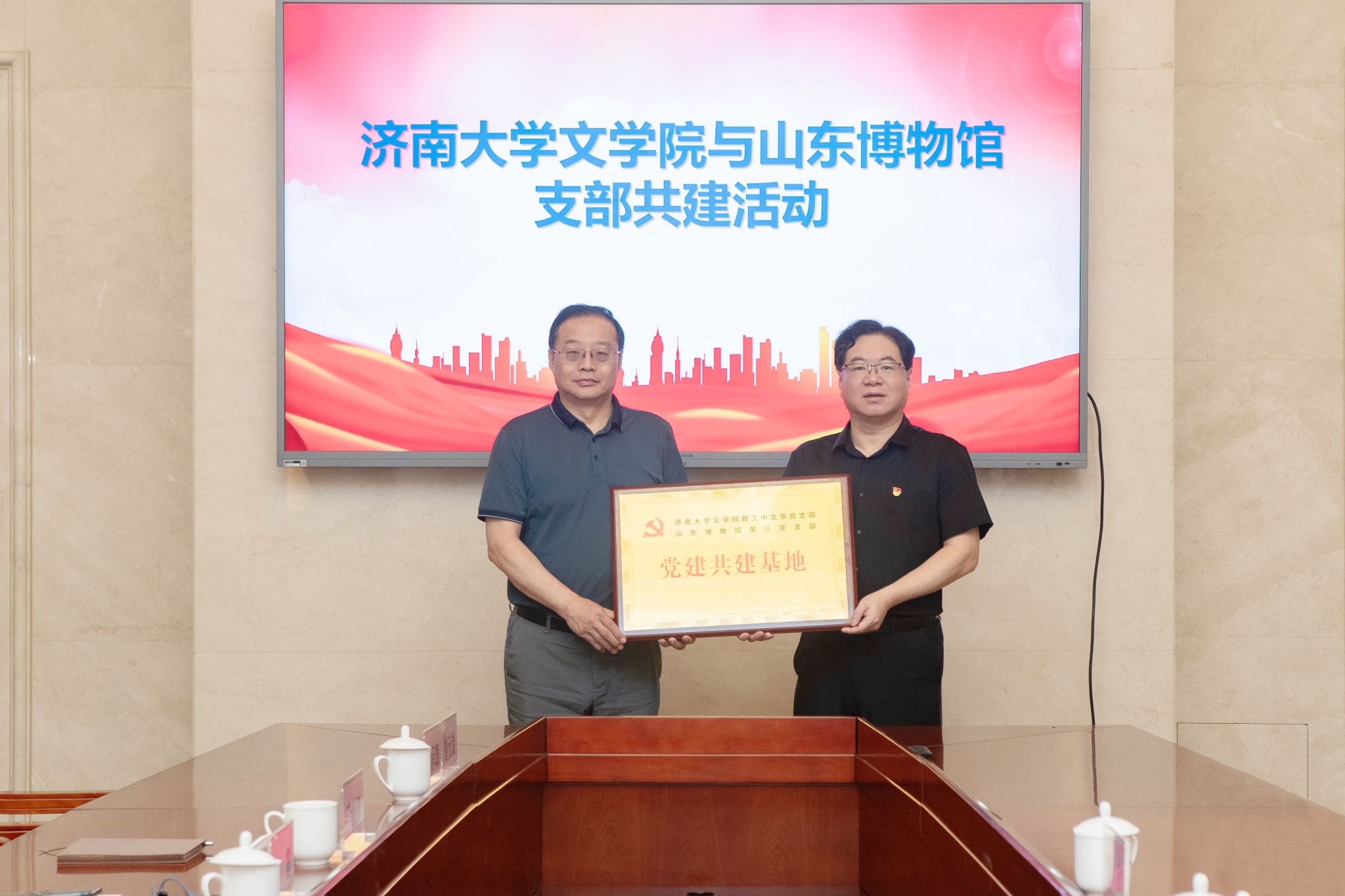 为深入学习贯彻习近平新时代中国特色社会主义思想,构建跨领域、多维度的党建共建体系,7月8日,文学院教工中文系党支部与山东博物馆第三党支部在山东博物馆联合开展主题为“深化共建共育 赓续中华文脉”的党建共建活动。山东博物馆党委专职副书记卢朝辉,党委委员、副馆长高震,文学院党委书记董海军,副书记、副院长潘颖,以及双方有关负责人、支部党员参加活动。